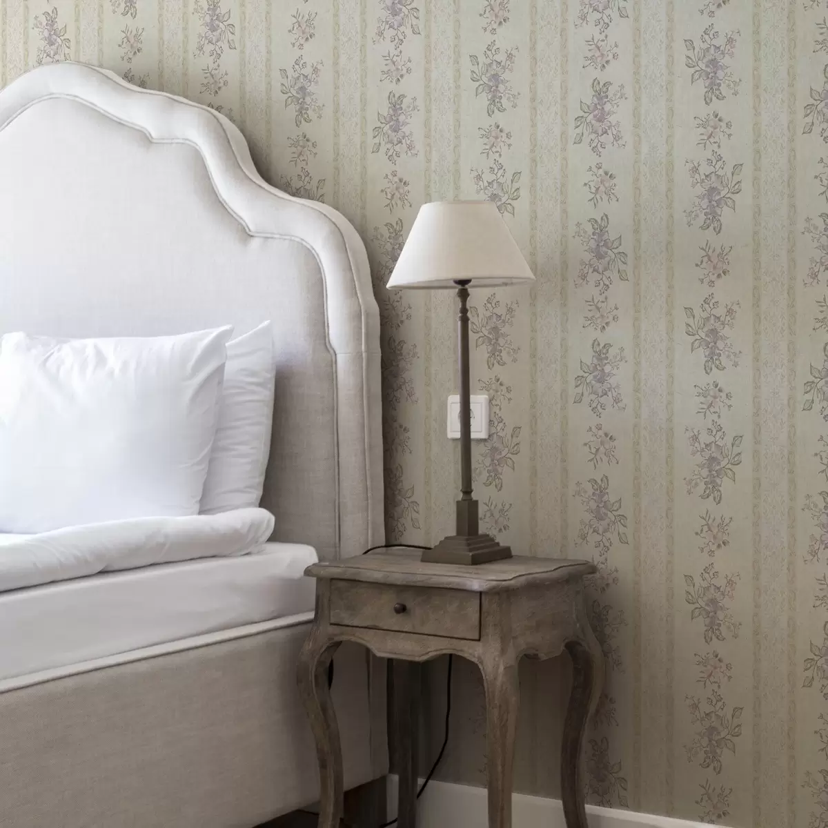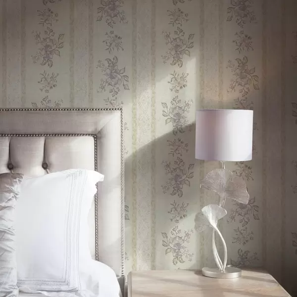 Papel de parede Flores vintage em um fundo listrado com ornamentos Nr. a00440