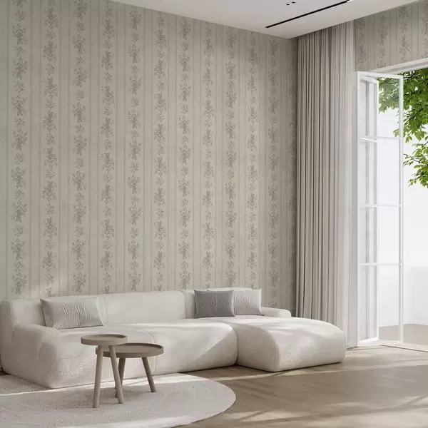 Papel de parede Flores vintage em um fundo listrado com ornamentos Nr. a00440