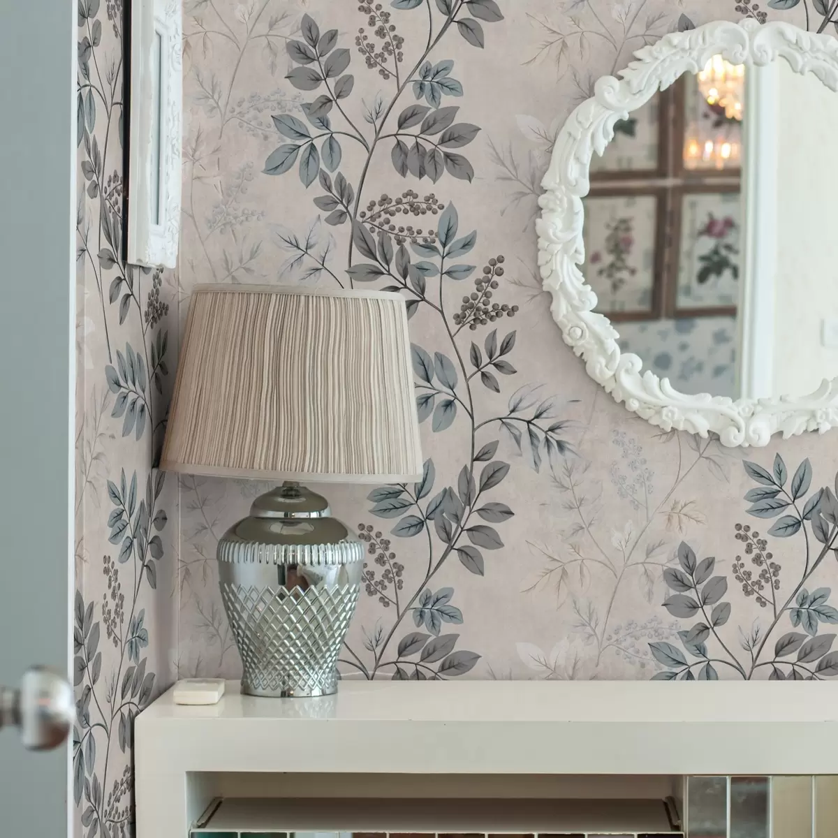 Papel de parede Ramos de bagas em tons pastéis com folhas cinza-azuladas Nr. a00443