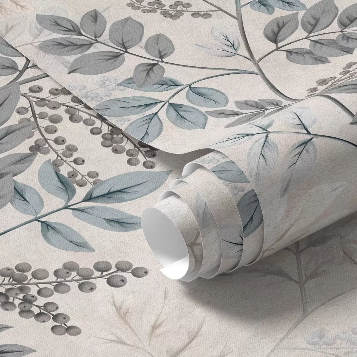 Papel de parede Ramos de bagas em tons pastéis com folhas cinza-azuladas Nr. a00443
