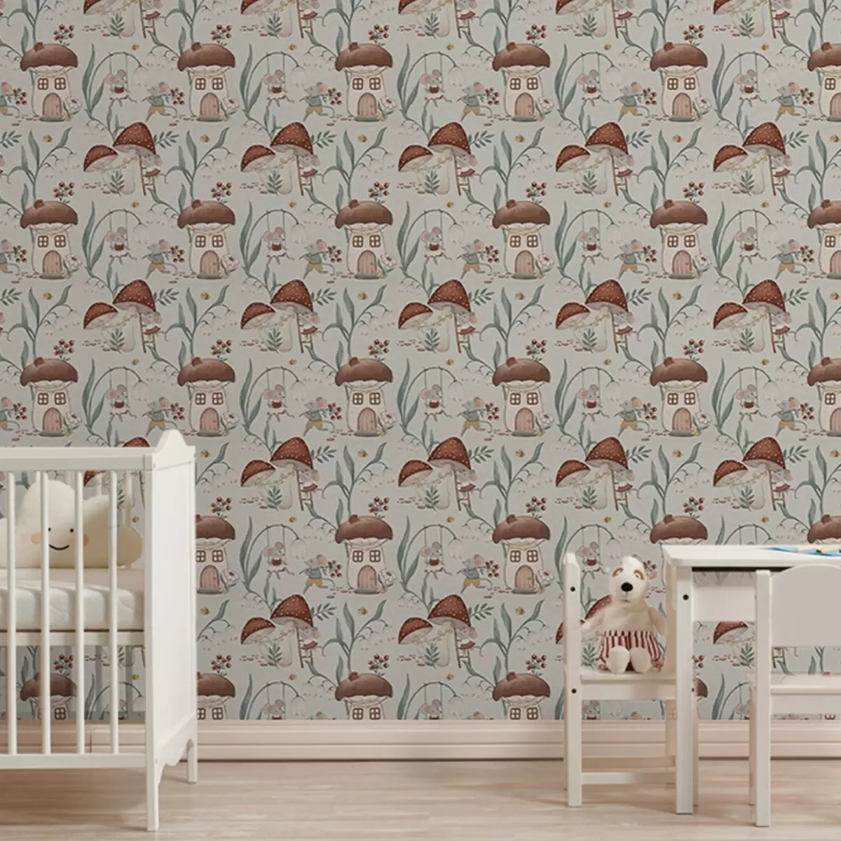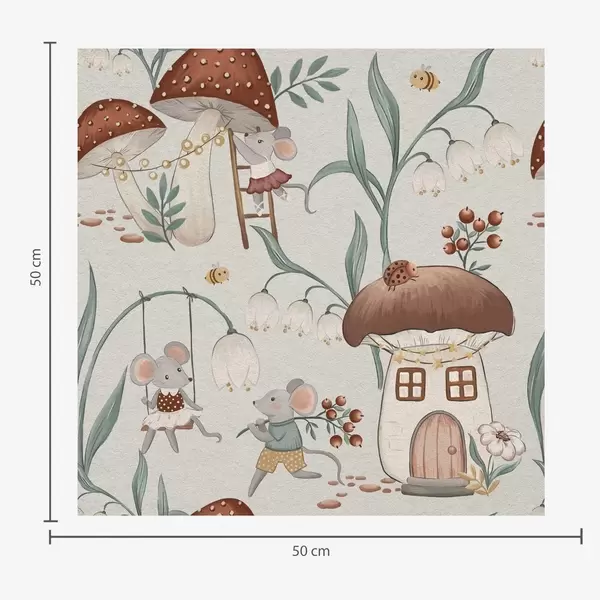 Papel de parede Camundongos e cogumelos fofos no fundo de uma paisagem de floresta elegante Nr. a00450