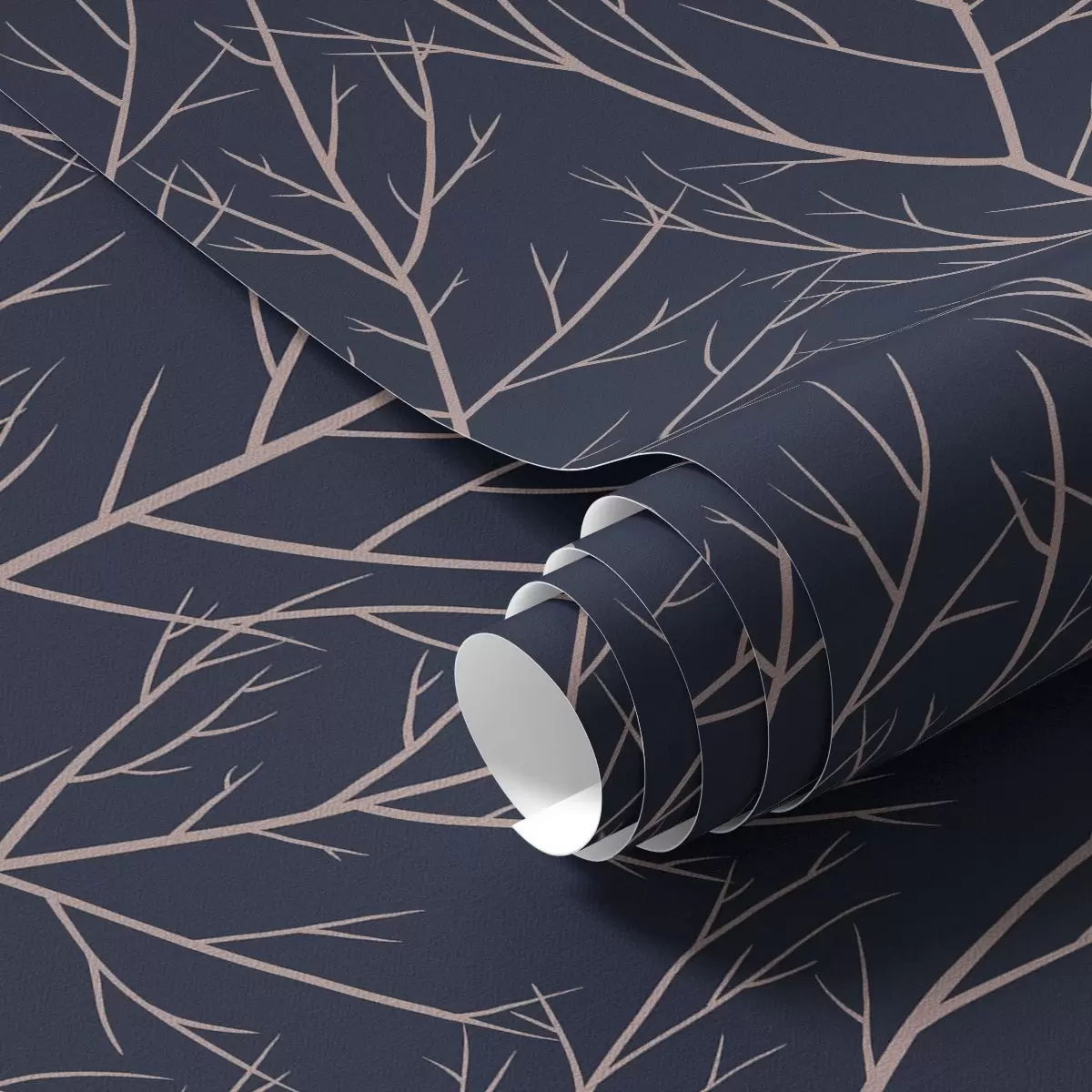 Papel de parede Galhos vermelhos suaves em um fundo azul-marinho profundo Nr. a00451