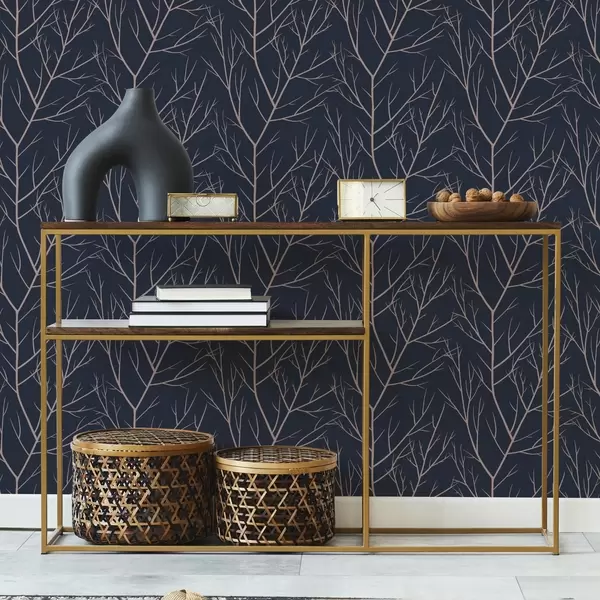 Papel de parede Galhos vermelhos suaves em um fundo azul-marinho profundo Nr. a00451