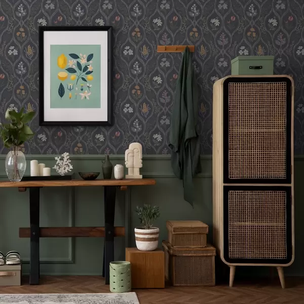 Papel de parede Moldura vintage escura com flores coloridas de jardim a00454