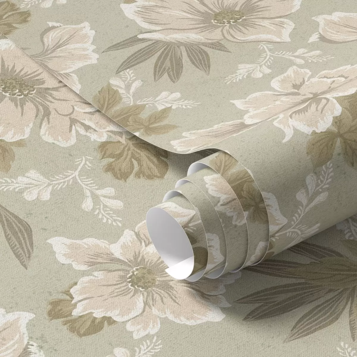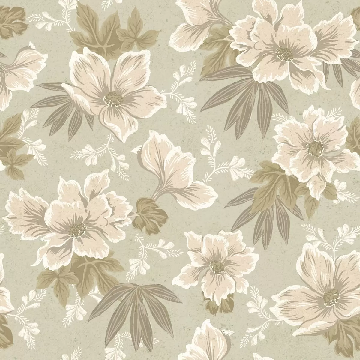 Papel de parede Flores creme em um fundo verde-oliva Nr. a00462