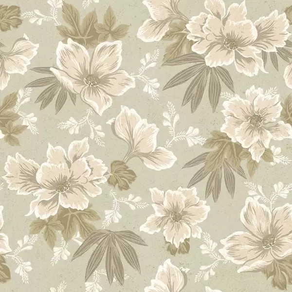 Papel de parede Flores creme em um fundo verde-oliva a00462