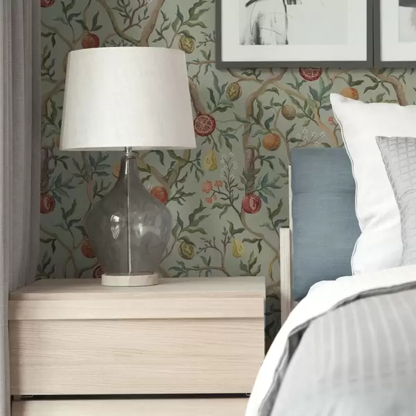 Papel de parede Frutas de romã, peras e flores em um fundo verde claro Nr. a00465