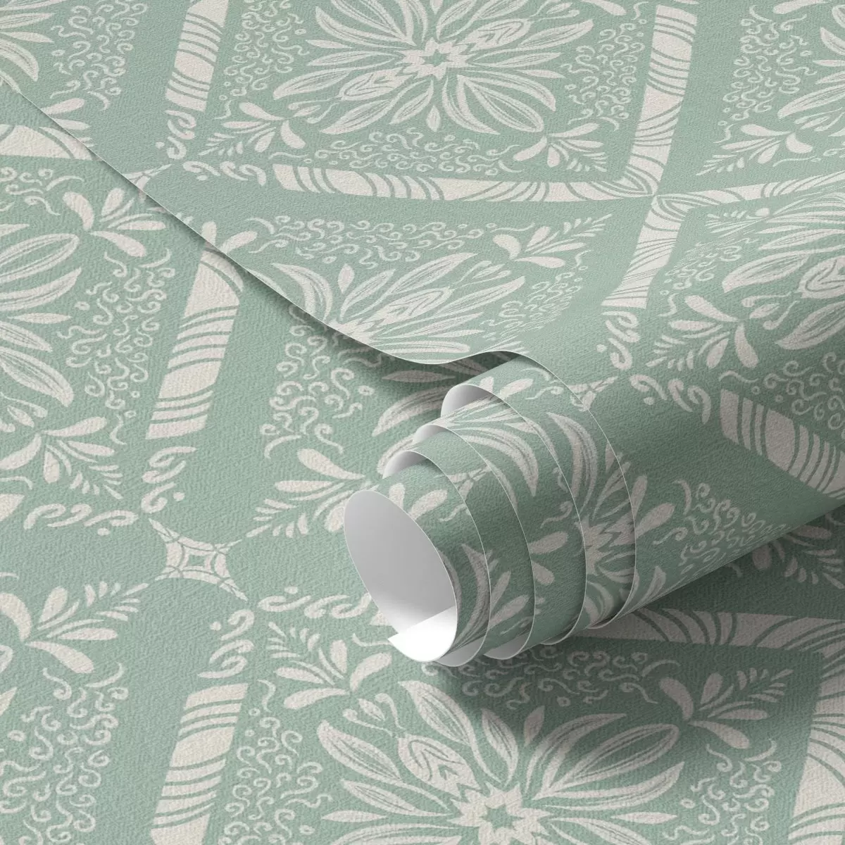 Papel de parede Padrão geométrico turquesa e bege com cachos Nr. a00466