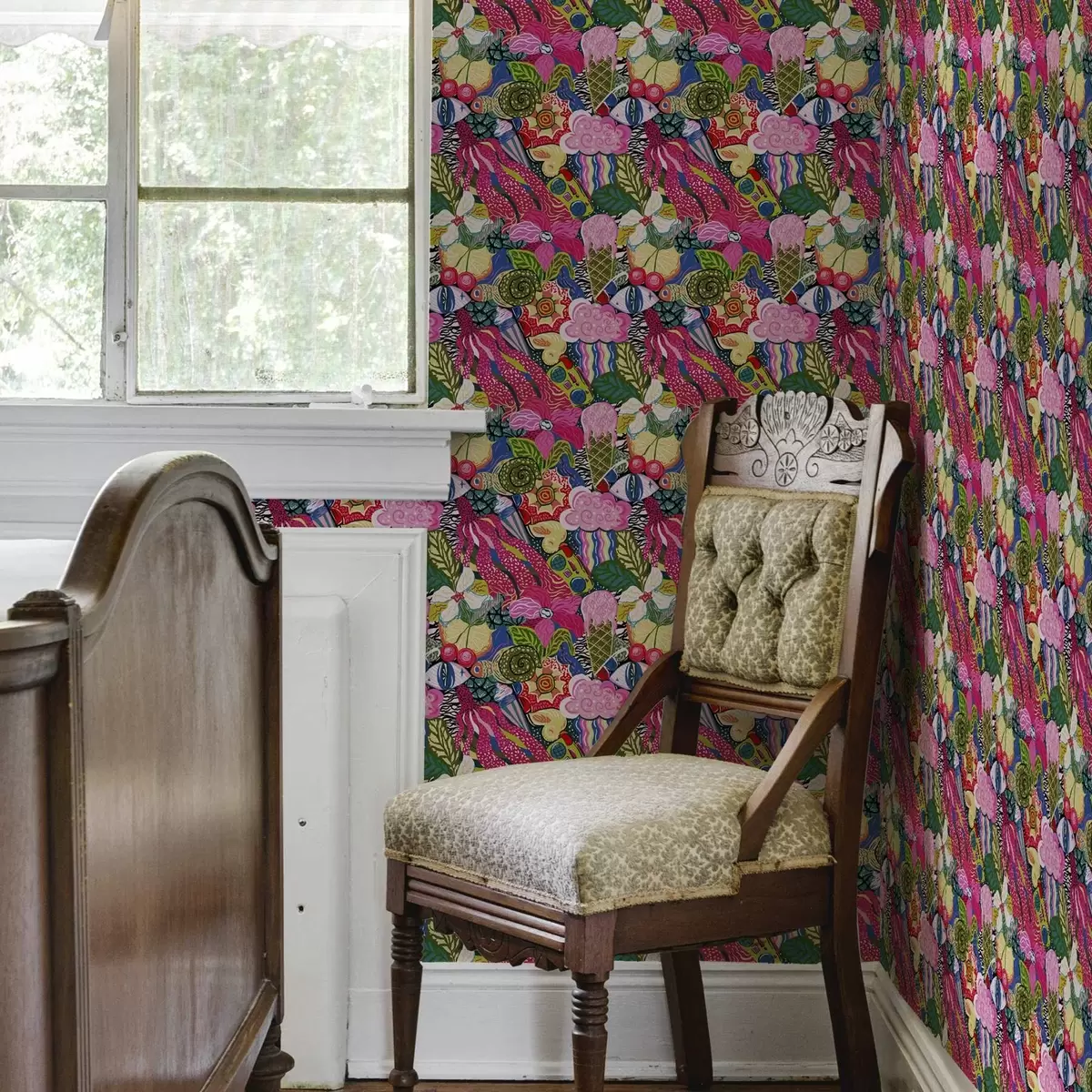 Papel de parede Pop-art abstrato com flores, bagas e padrões Nr. a00471