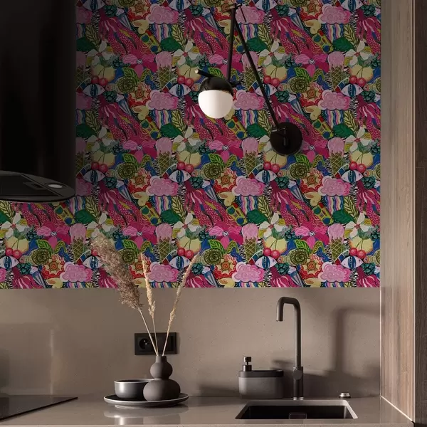 Papel de parede Pop-art abstrato com flores, bagas e padrões Nr. a00471