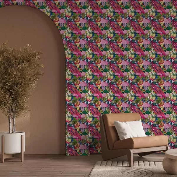 Papel de parede Pop-art abstrato com flores, bagas e padrões Nr. a00471