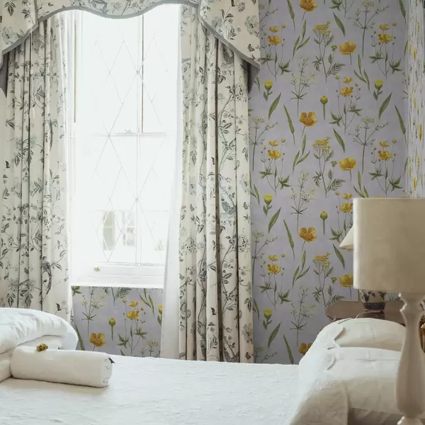 Papel de parede Flores amarelas e folhagens em um fundo cinza claro Nr. a00472