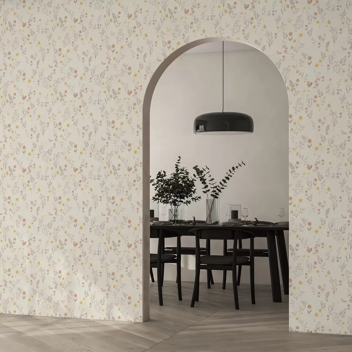 Papel de parede Flores do campo e galinhas em tons pastéis suaves Nr. a00478