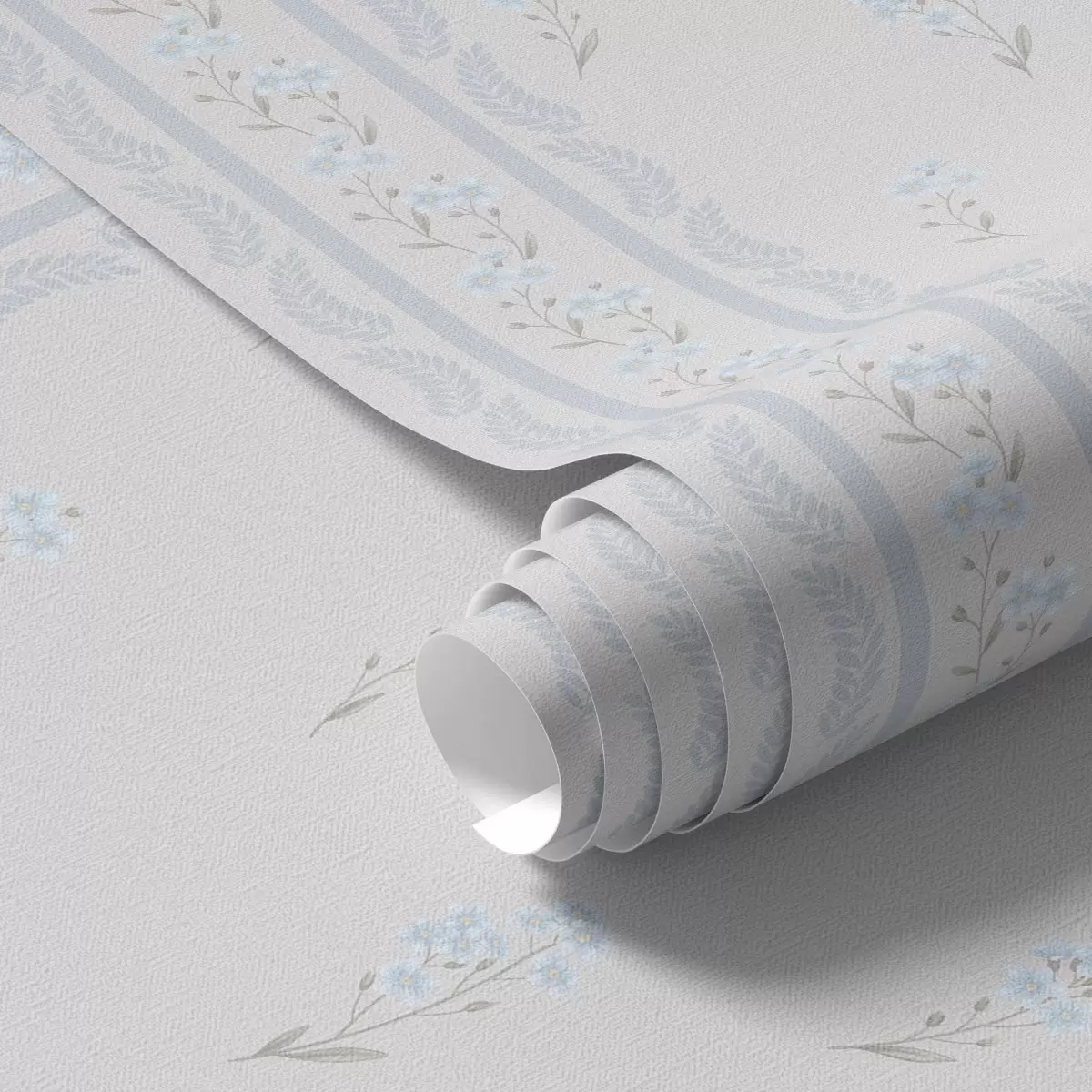 Papel de parede Fundo branco com flores azuis e faixa decorativa Nr. a00484v1