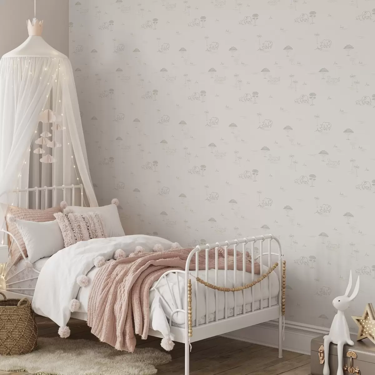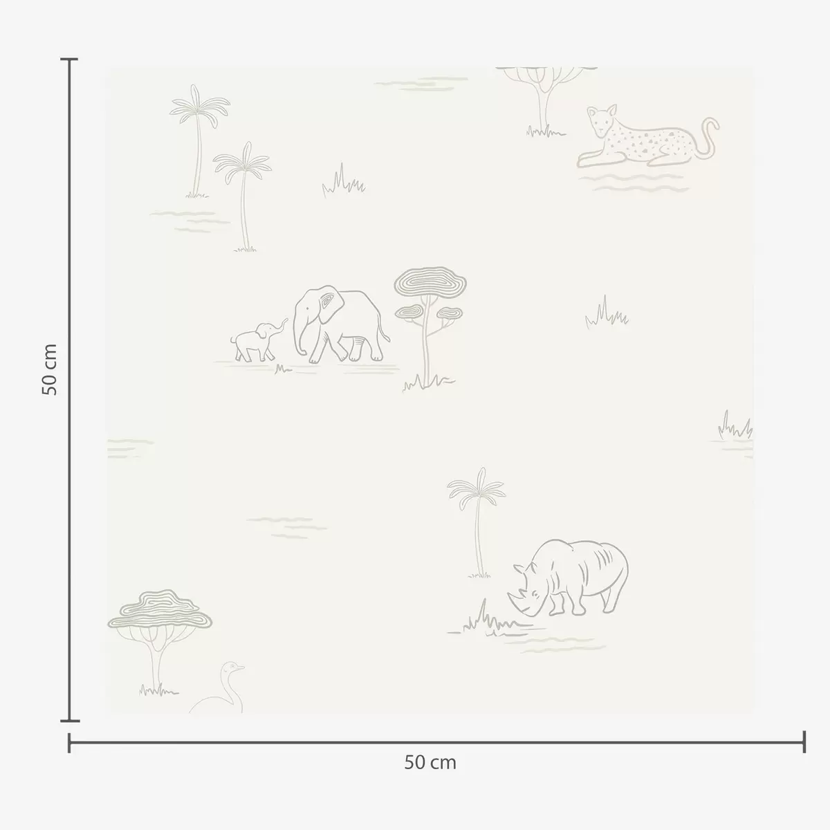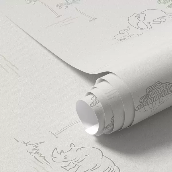 Papel de parede Safári minimalista: elefantes, rinocerontes, leopardos e palmeiras Nr. a00492