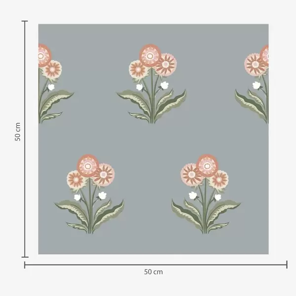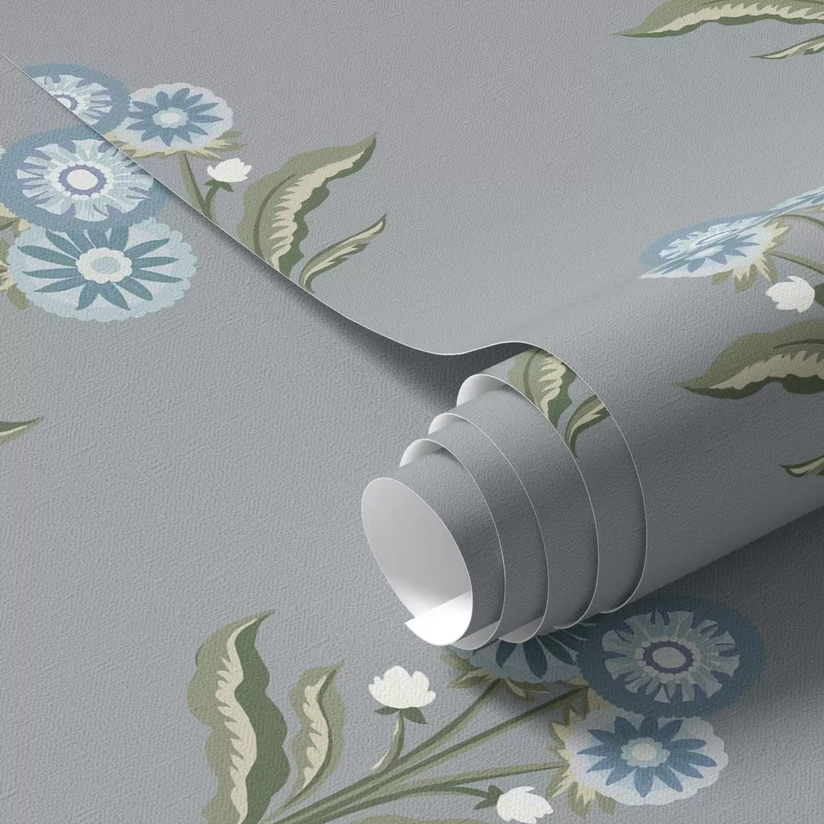 Papel de parede Flores estilizadas sobre fundo cinza-azulado, paleta de cores frias Nr. a00494v1