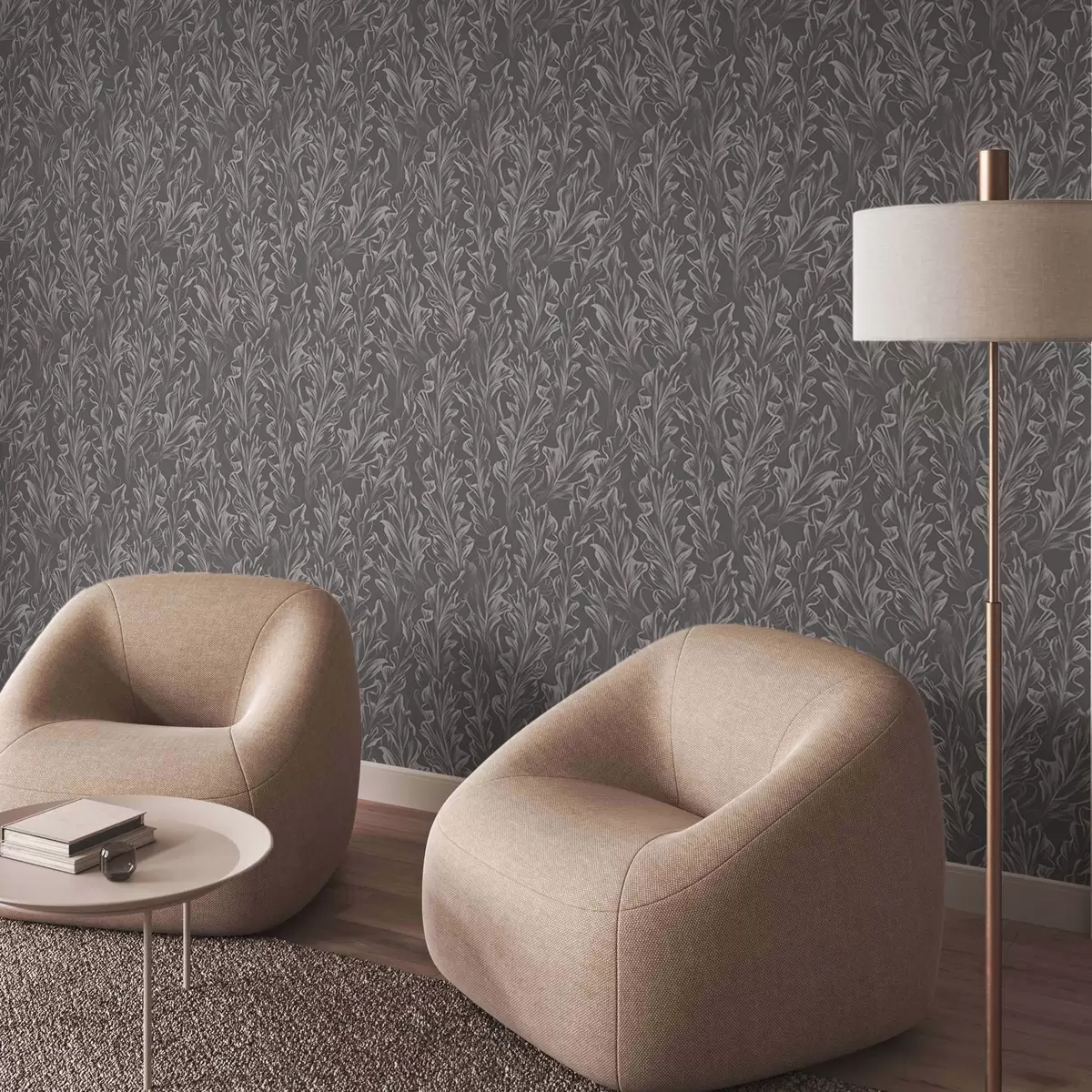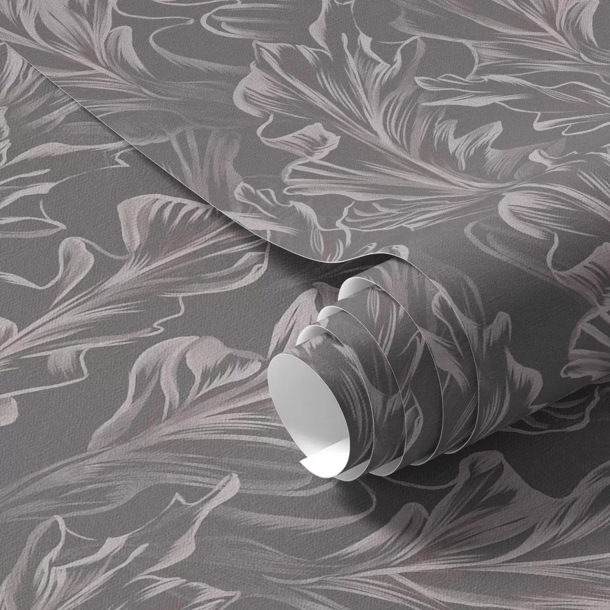Papel de parede Ondas fluidas de folhas sobre um fundo grafite, alto contraste Nr. a00495v1