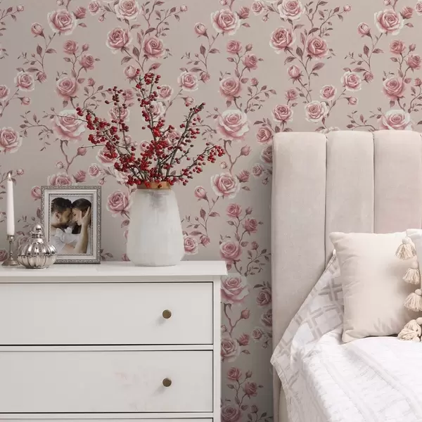 Papel de parede Rosas em pó sobre bege — padrão vintage Nr. a00497