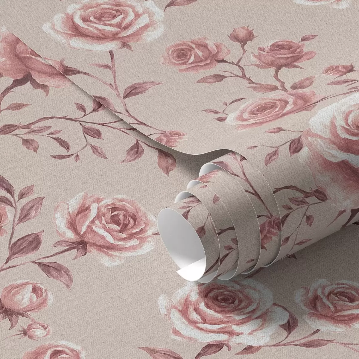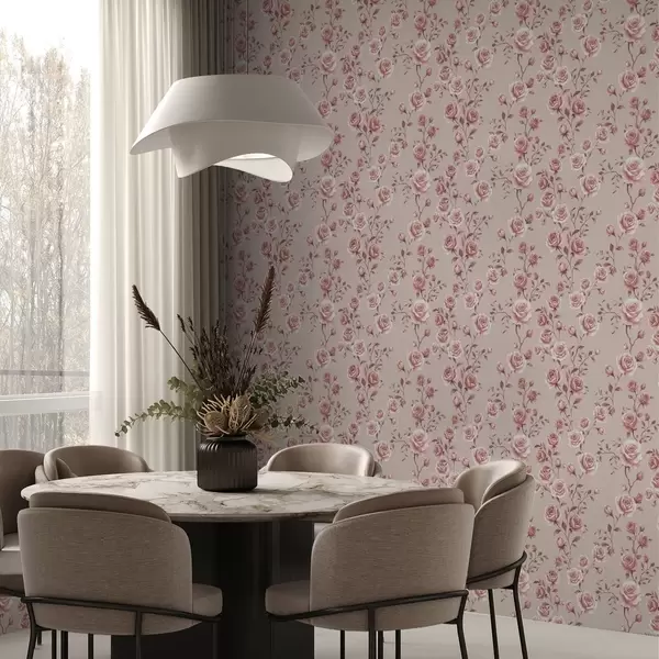 Papel de parede Rosas em pó sobre bege — padrão vintage Nr. a00497