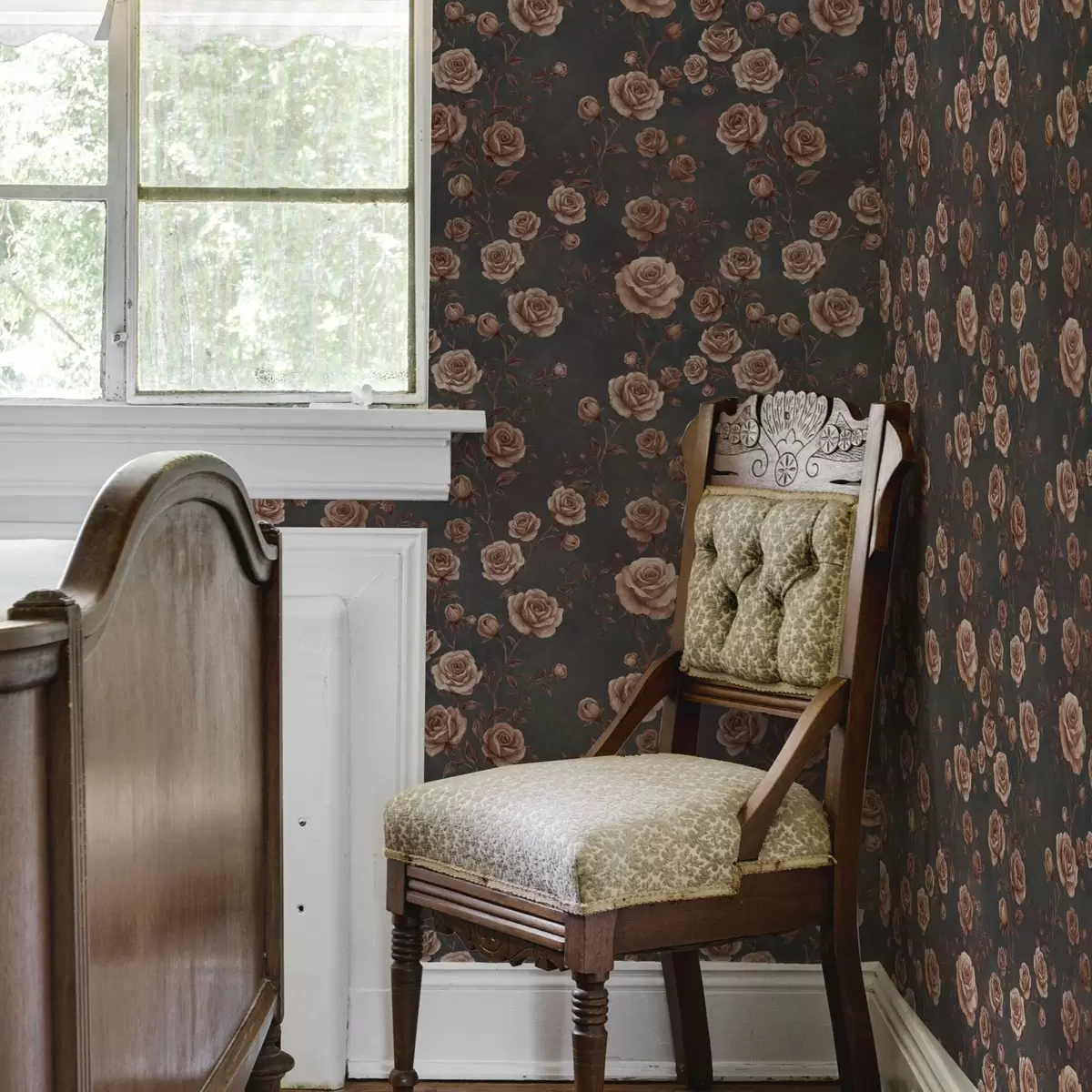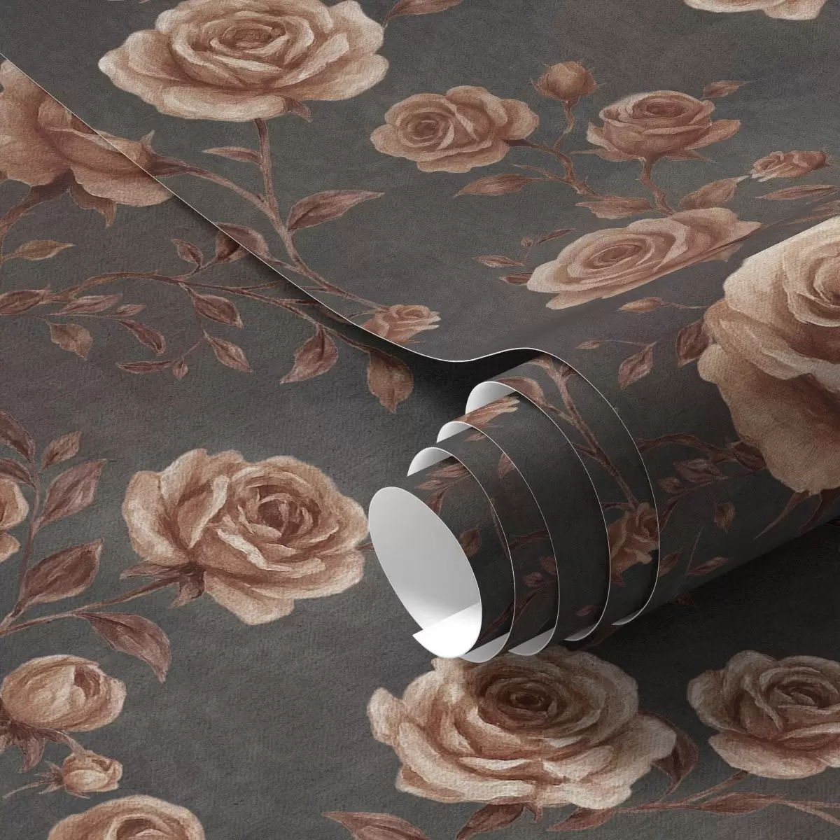 Papel de parede Rosas vintage sobre fundo grafite, paleta terracota Nr. a00497v1