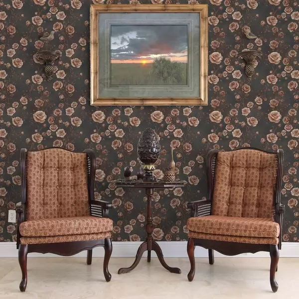 Papel de parede Rosas vintage sobre fundo grafite, paleta terracota Nr. a00497v1