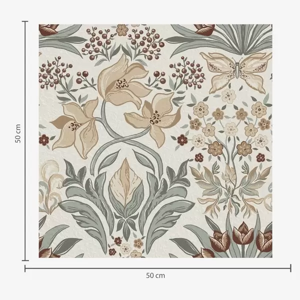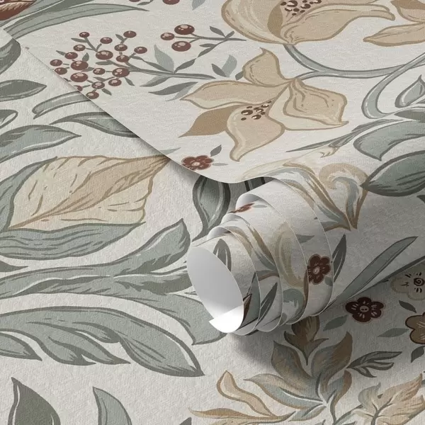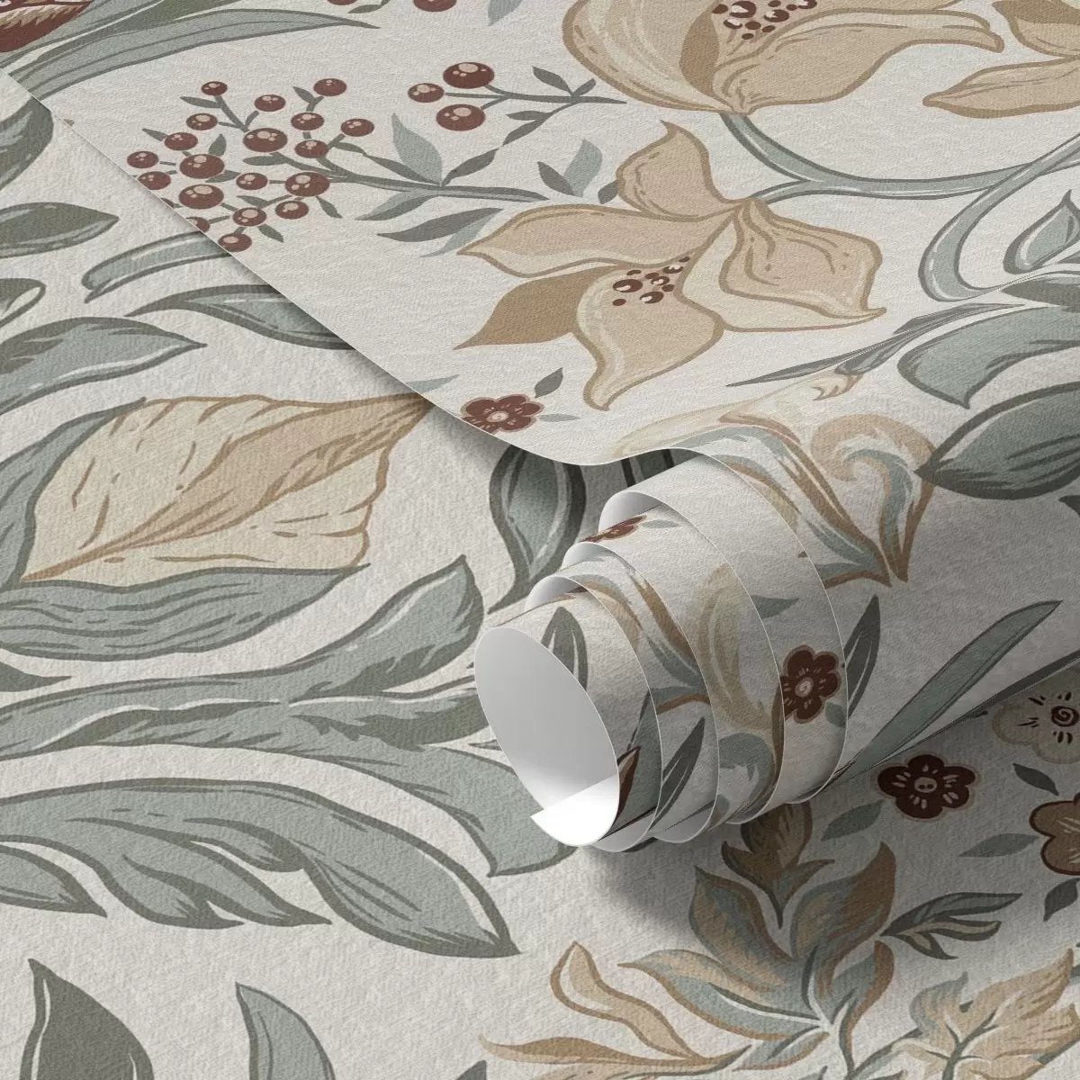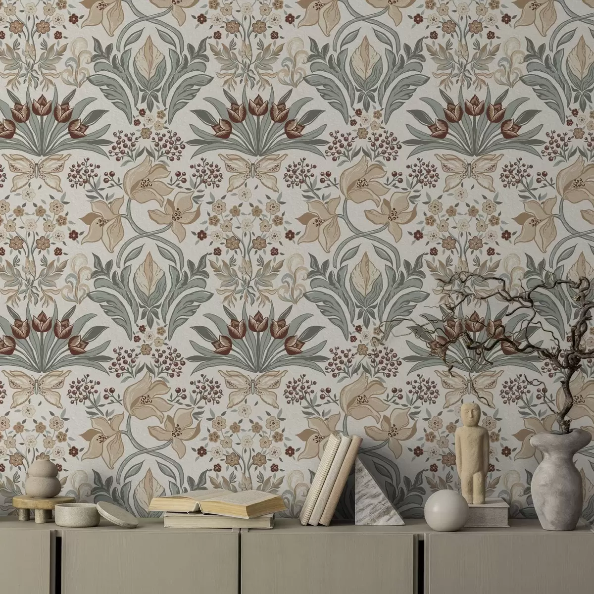 Papel de parede Lírios decorativos e uma borboleta sobre um fundo creme Nr. a00500