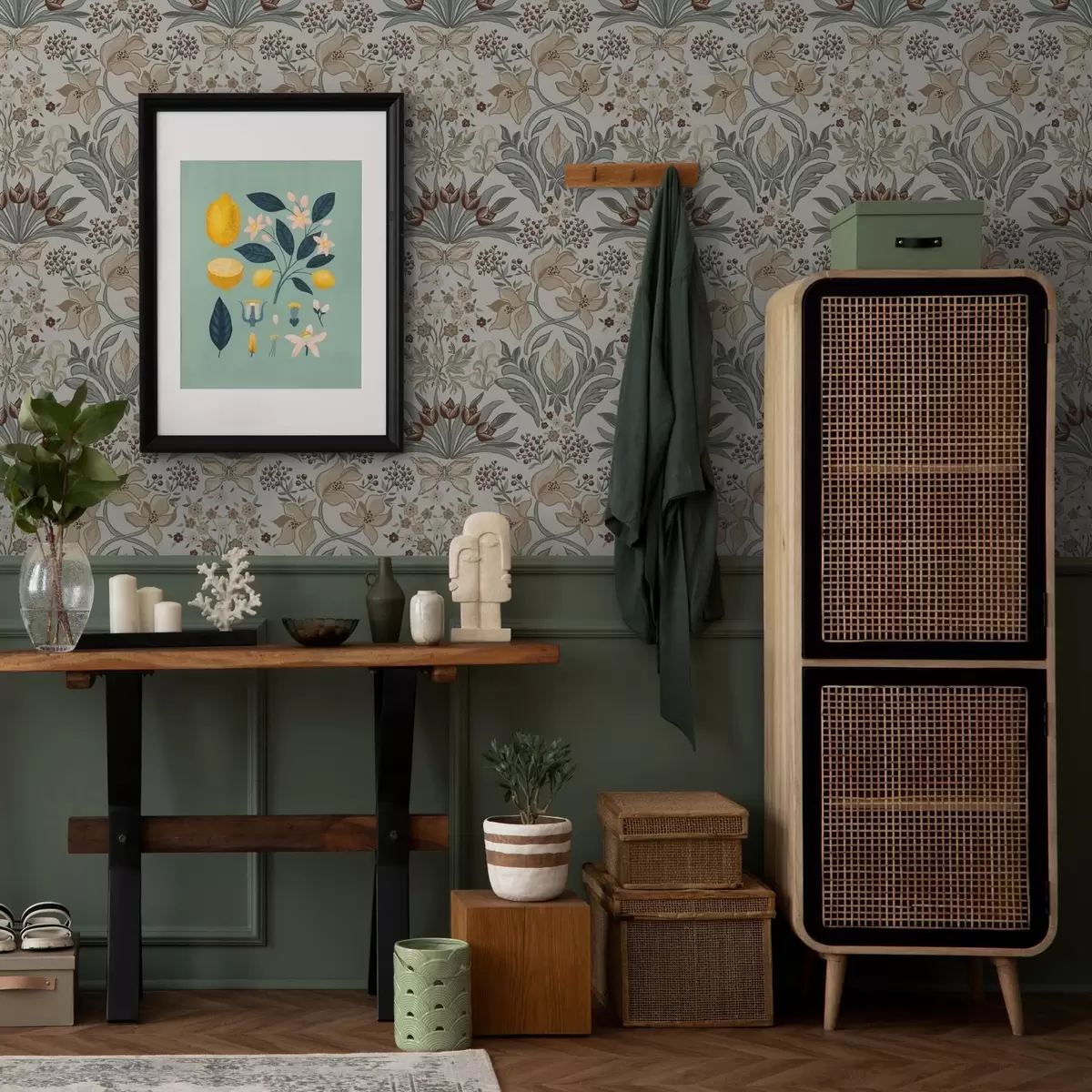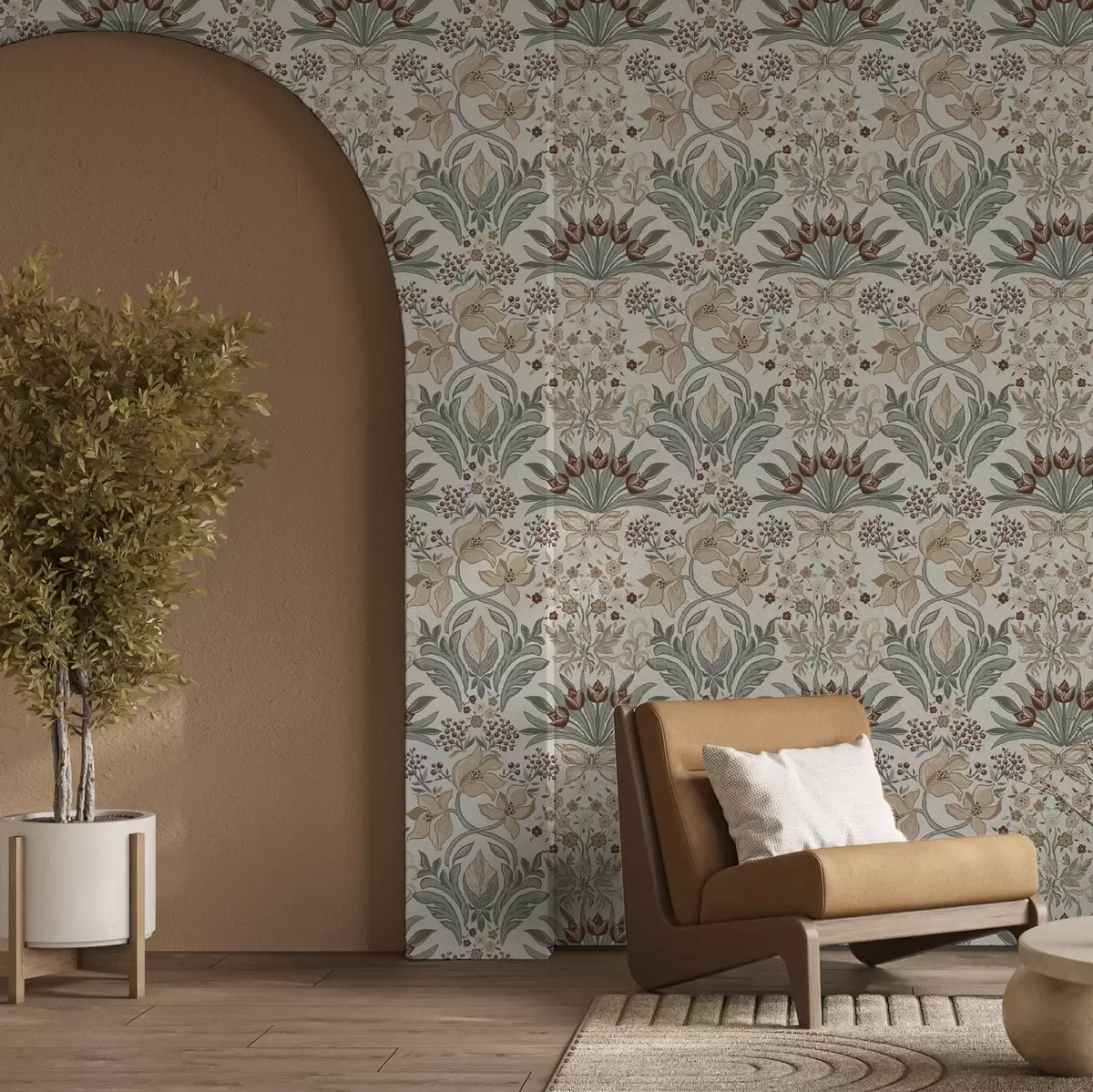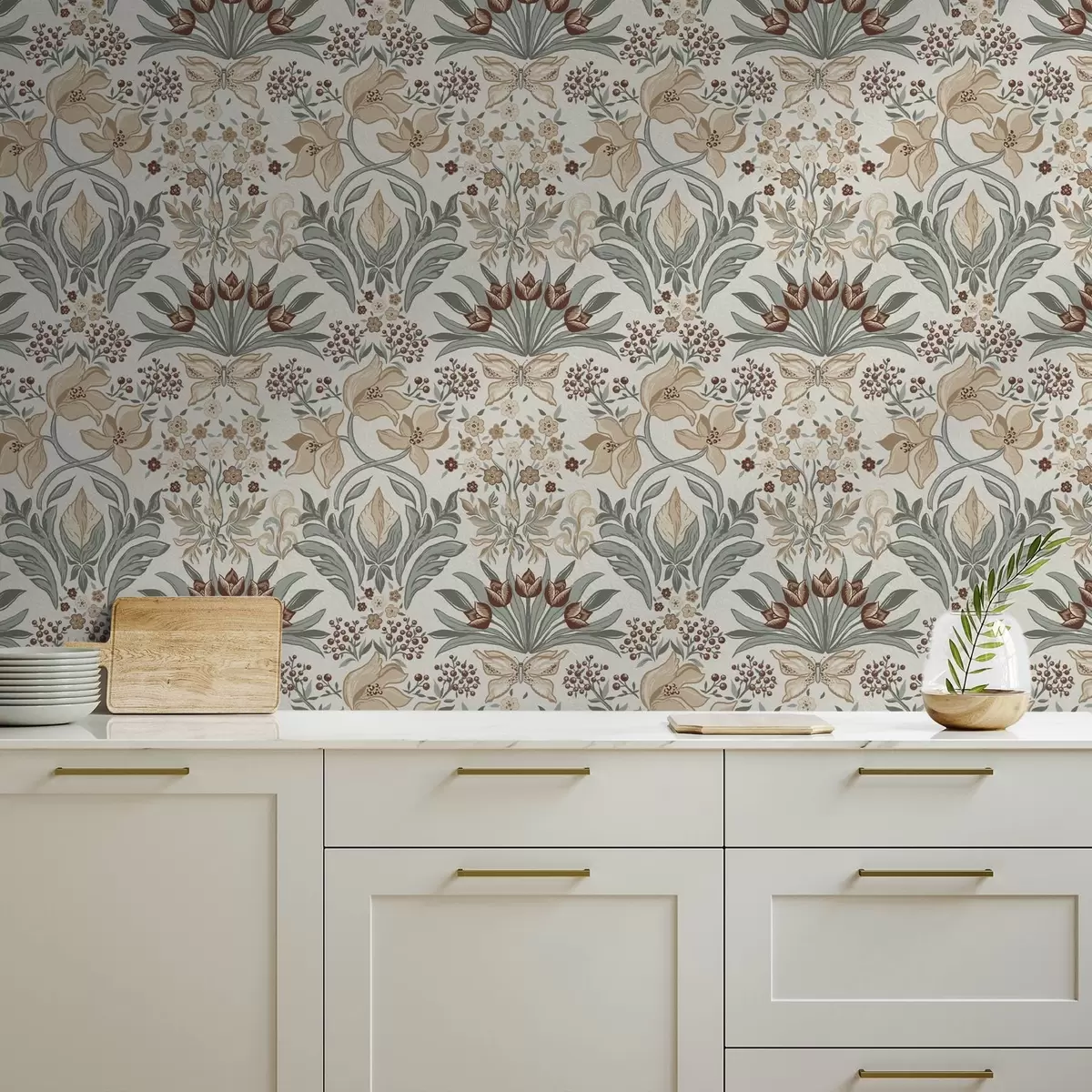 Papel de parede Lírios decorativos e uma borboleta sobre um fundo creme Nr. a00500