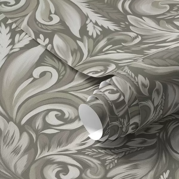 Papel de parede Volutas de acanto em tons de bege-oliva Nr. a00501