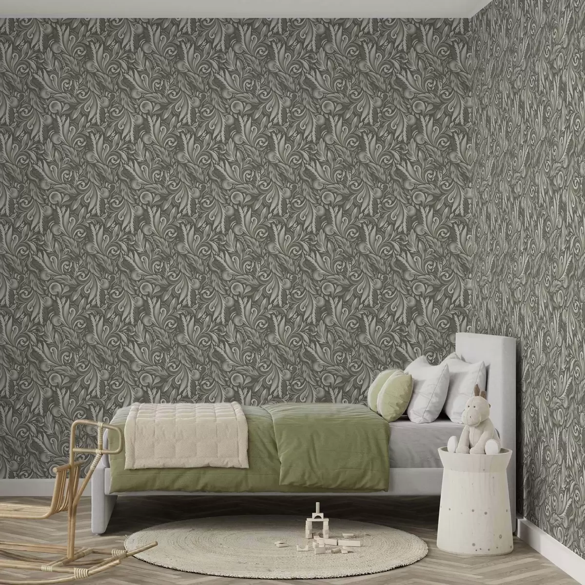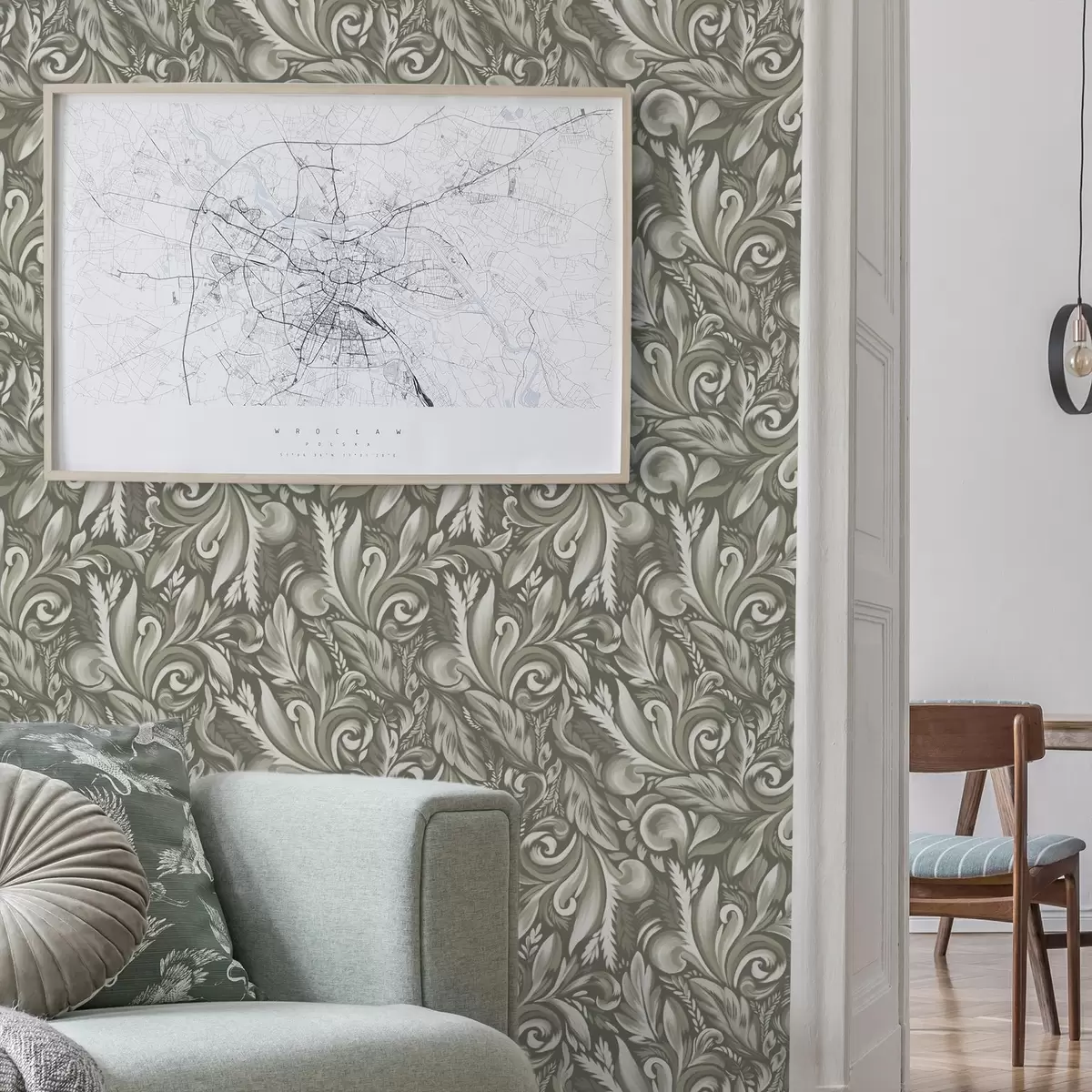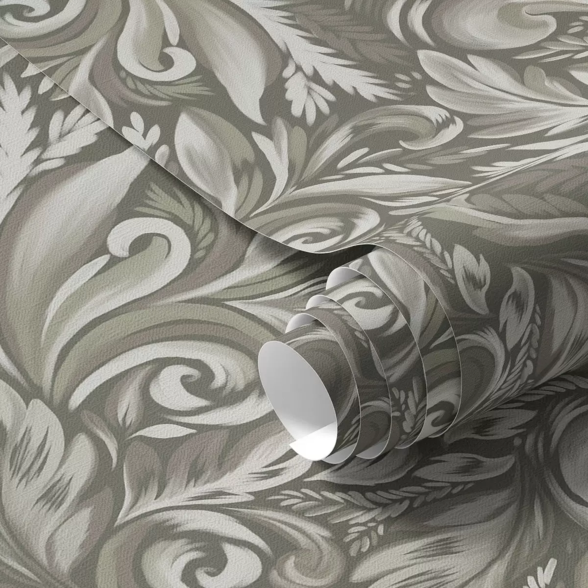 Papel de parede Volutas de acanto em tons de bege-oliva a00501