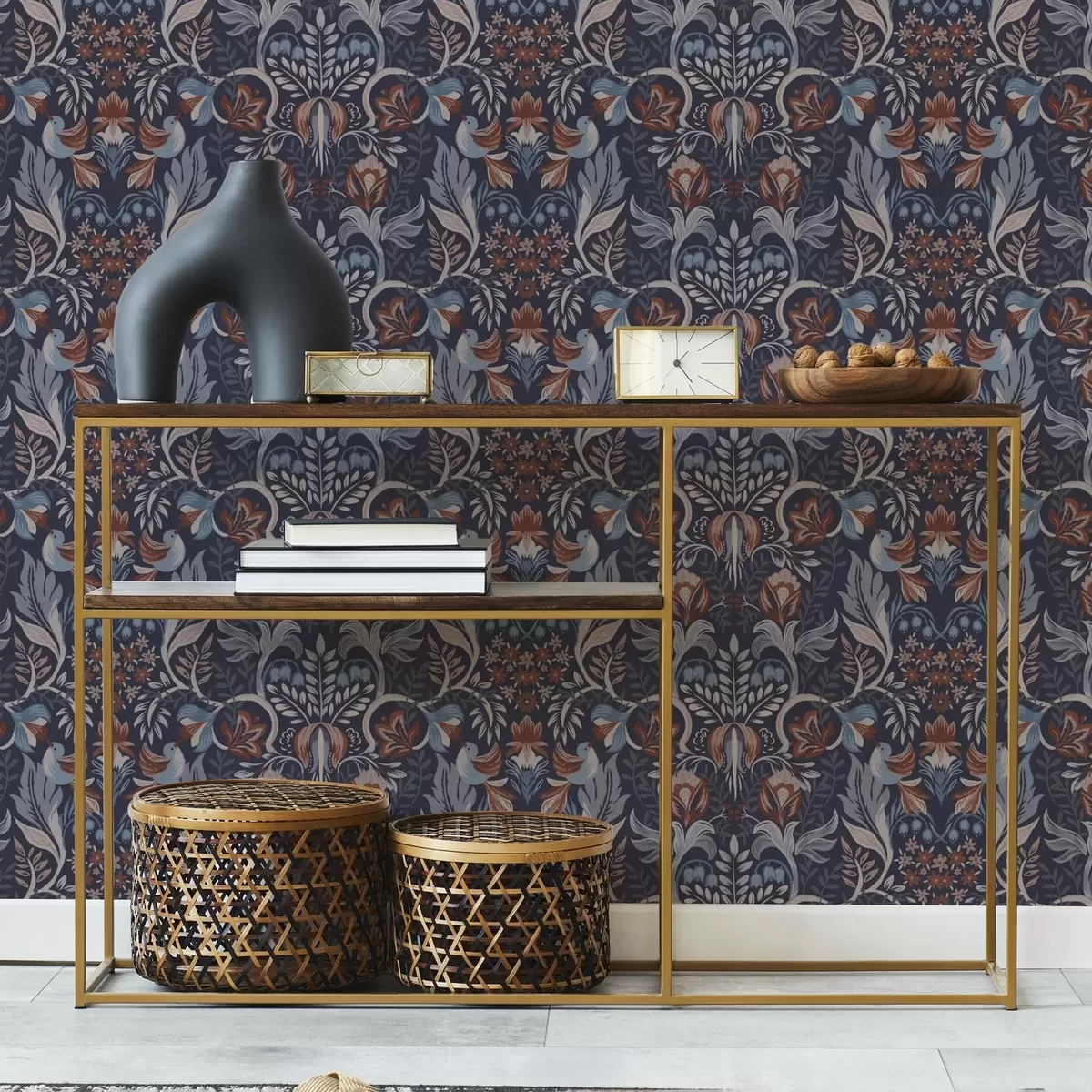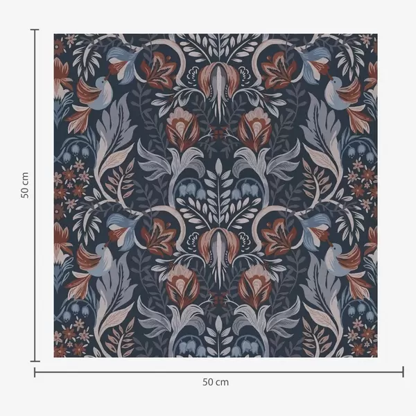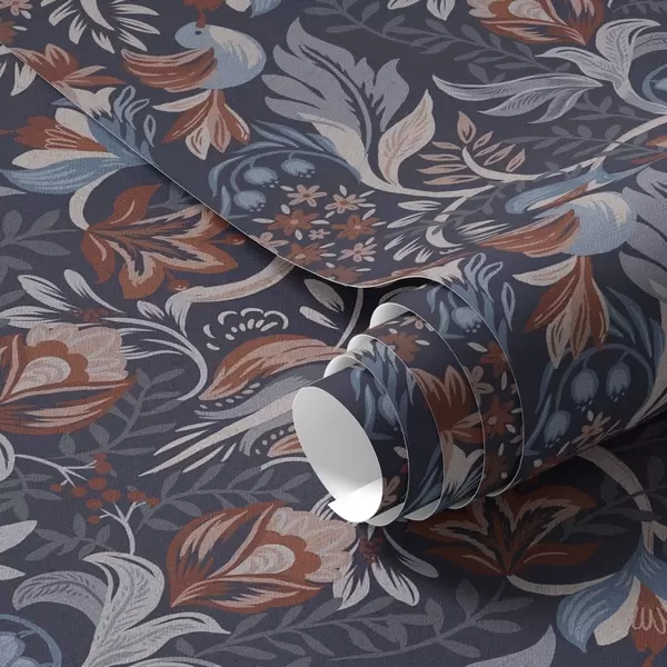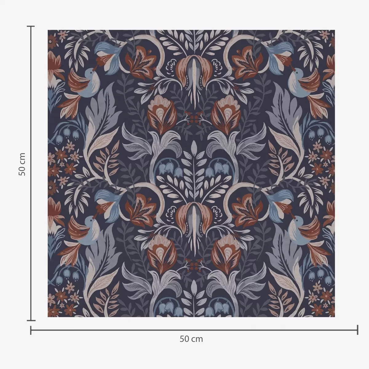 Papel de parede Flores e pássaros folclóricos sobre fundo azul escuro Nr. a00502