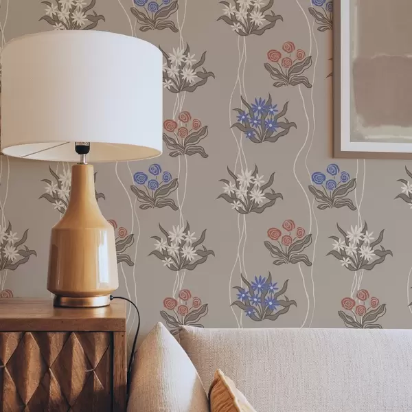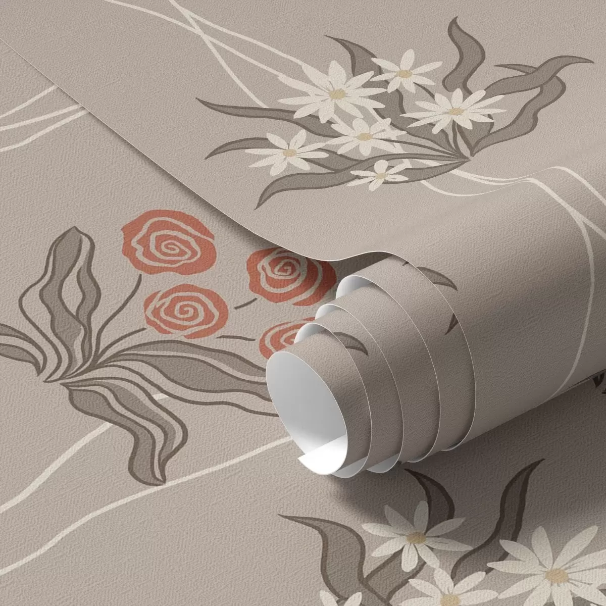 Papel de parede Flores retrô com linhas onduladas em bege quente a00503