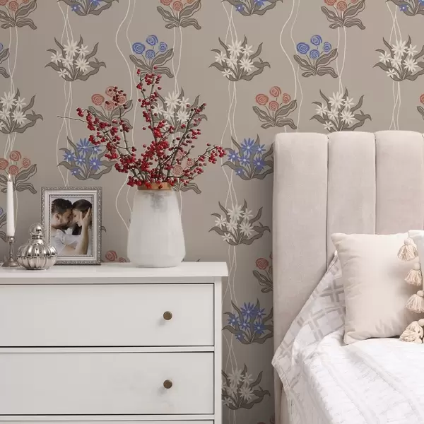 Papel de parede Flores retrô com linhas onduladas em bege quente Nr. a00503