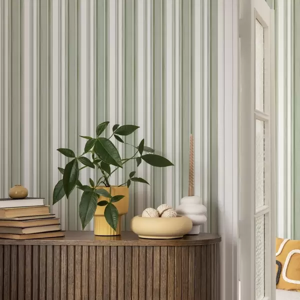 Papel de parede Listras verdes com intervalos brancos e linhas finas a00526