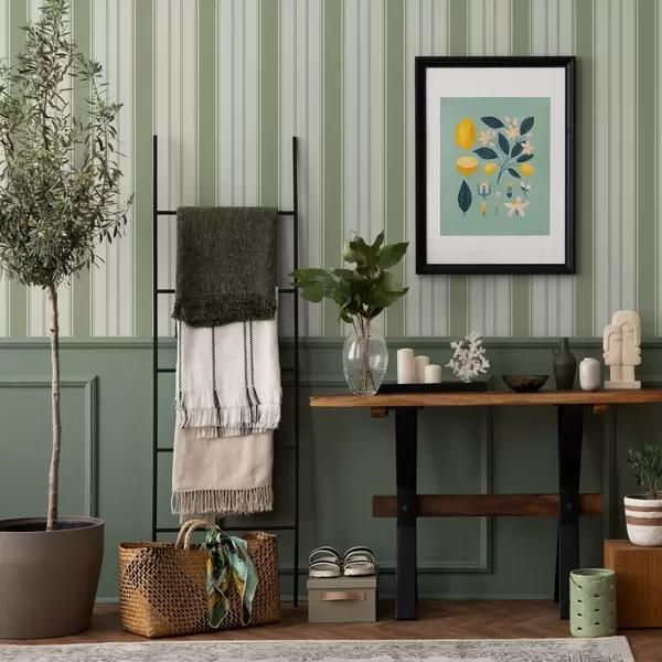 Papel de parede Fundo creme com listras verticais verdes uniformes Nr. a00560
