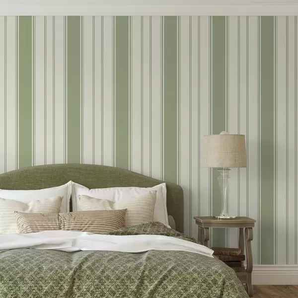 Papel de parede Fundo creme com largas listras verdes claras Nr. a00561
