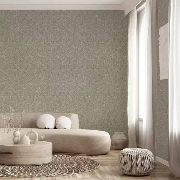 Papel de parede Estilo Morris: galhos bege sobre fundo cinza-esverdeado a00569