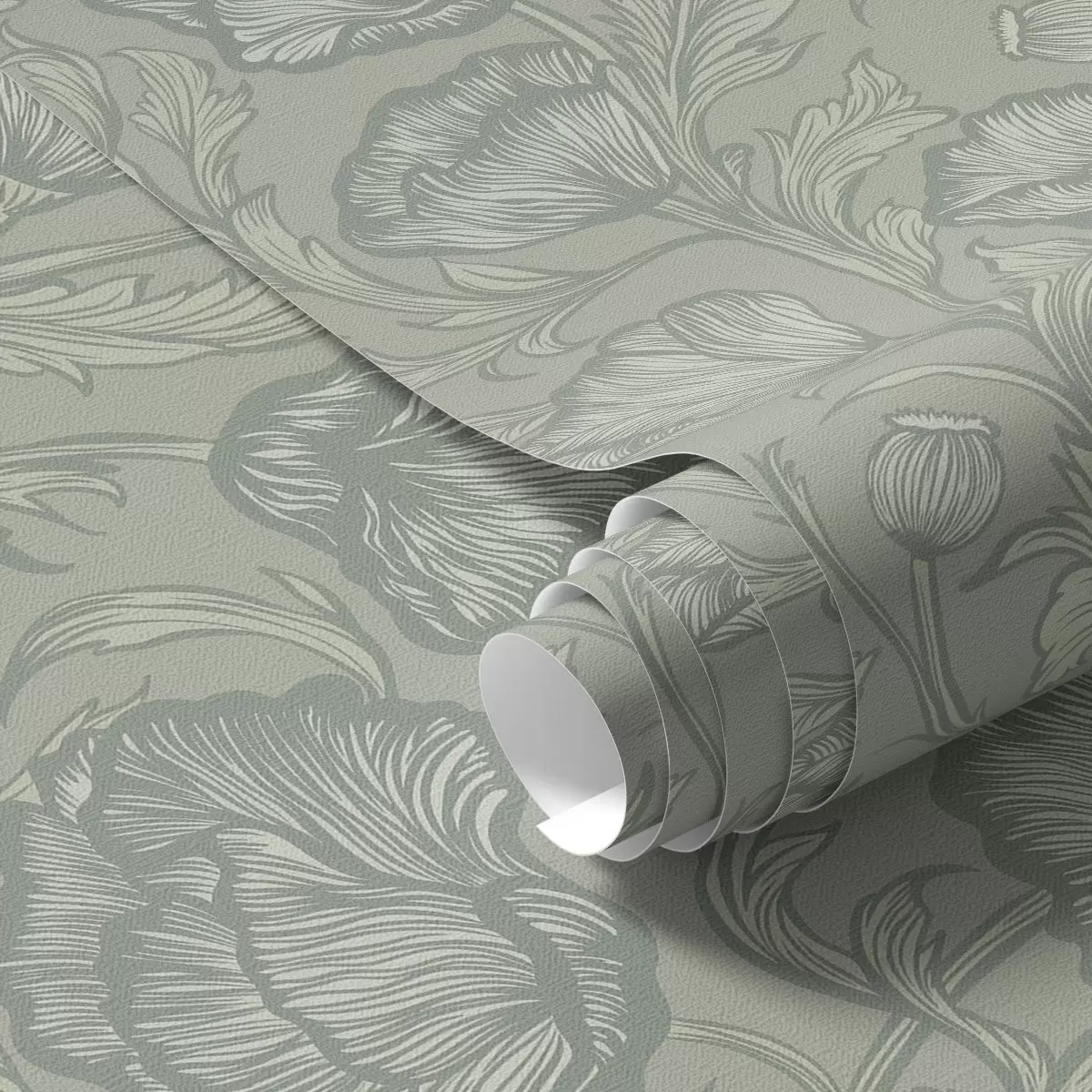 Papel de parede Papoilas em linha contínua sobre fundo cinza-esverdeado Nr. a00572v1