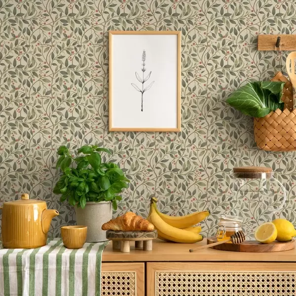 Papel de parede Ramos de oliveira com bagas sobre um fundo claro e quente a00573