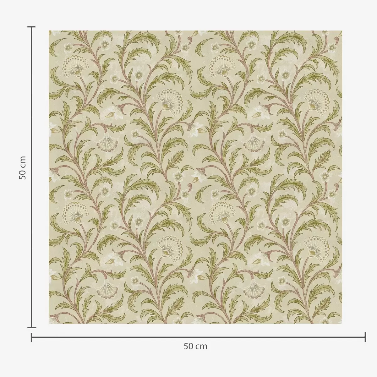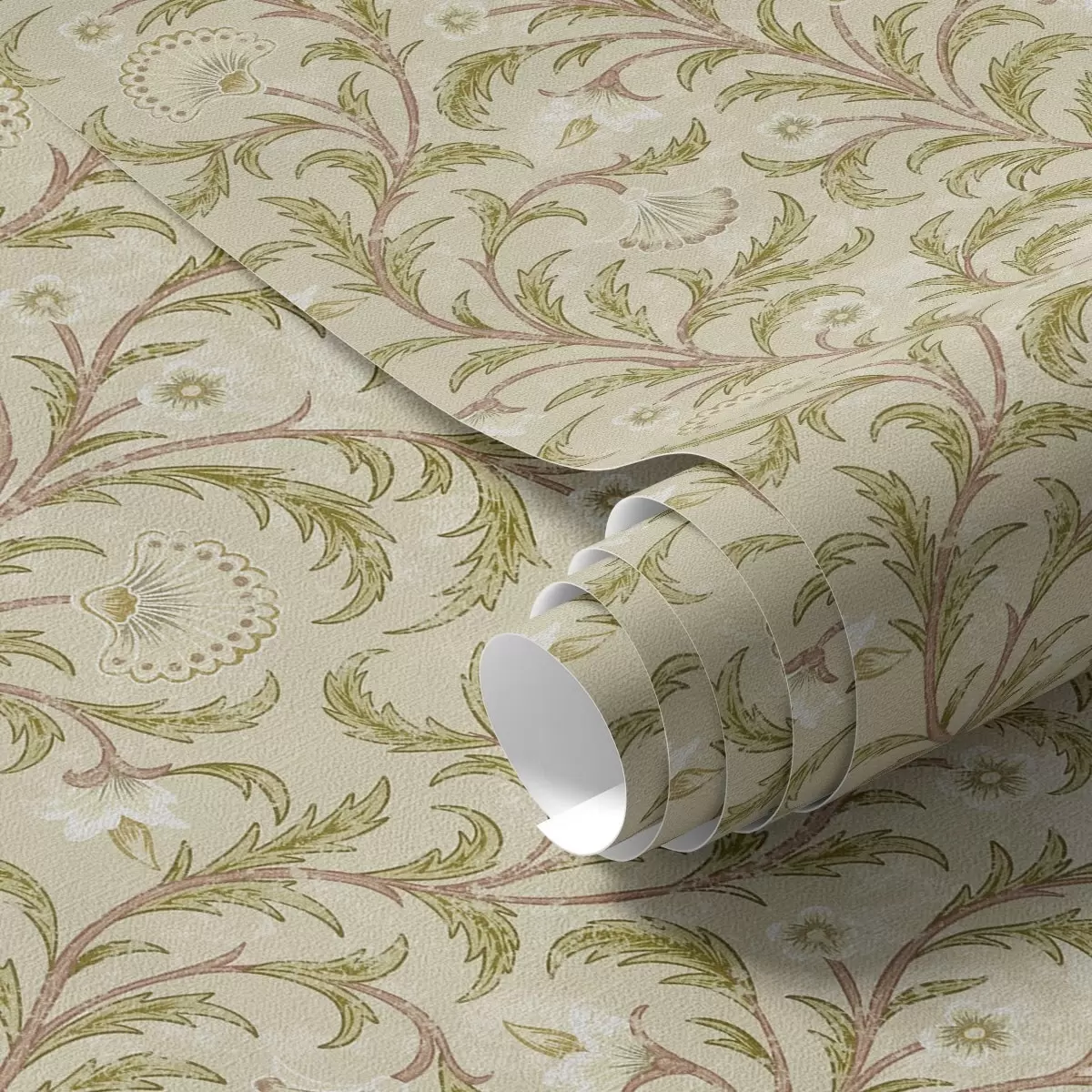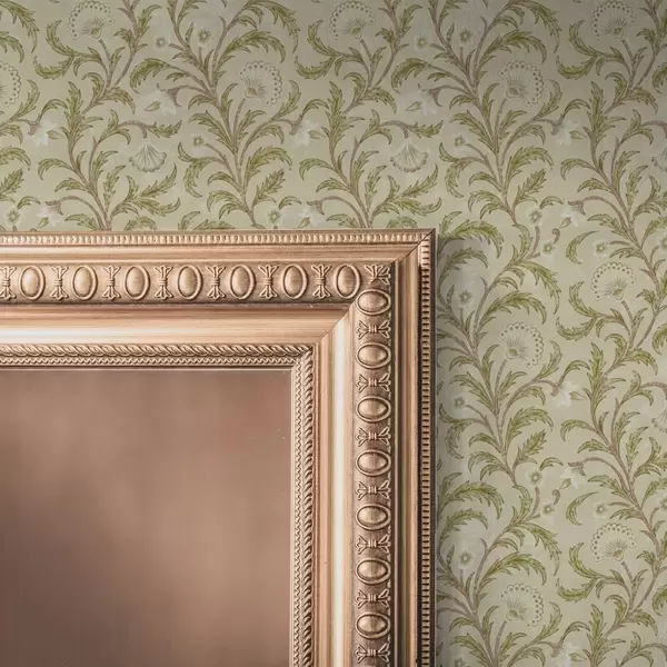 Papel de parede Ornamento vintage com volutas e flores, bege e verde-oliva Nr. a00574