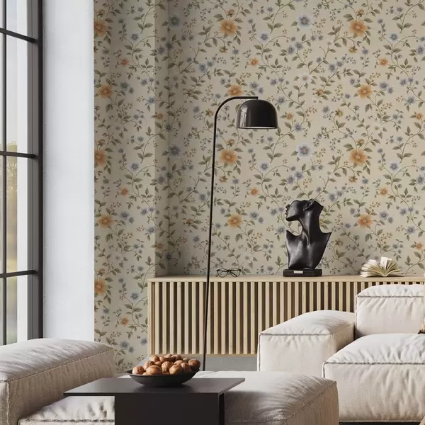 Papel de parede Galhos florais com flores azuis e pêssego Nr. a00575