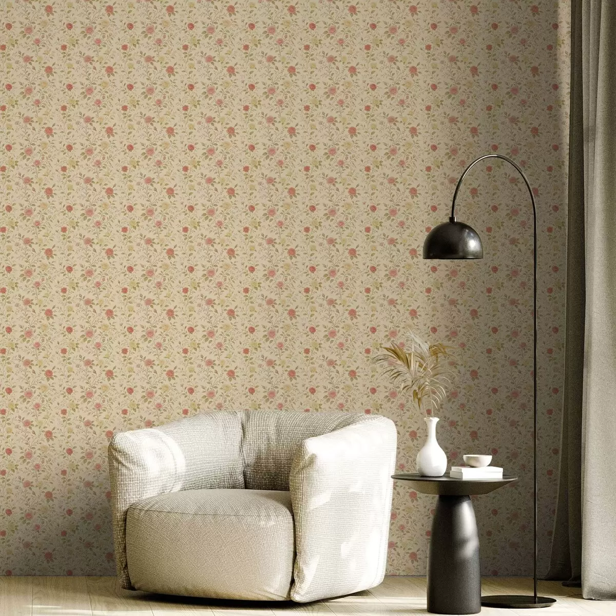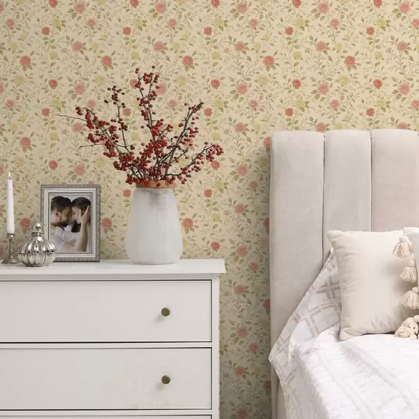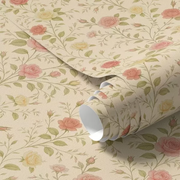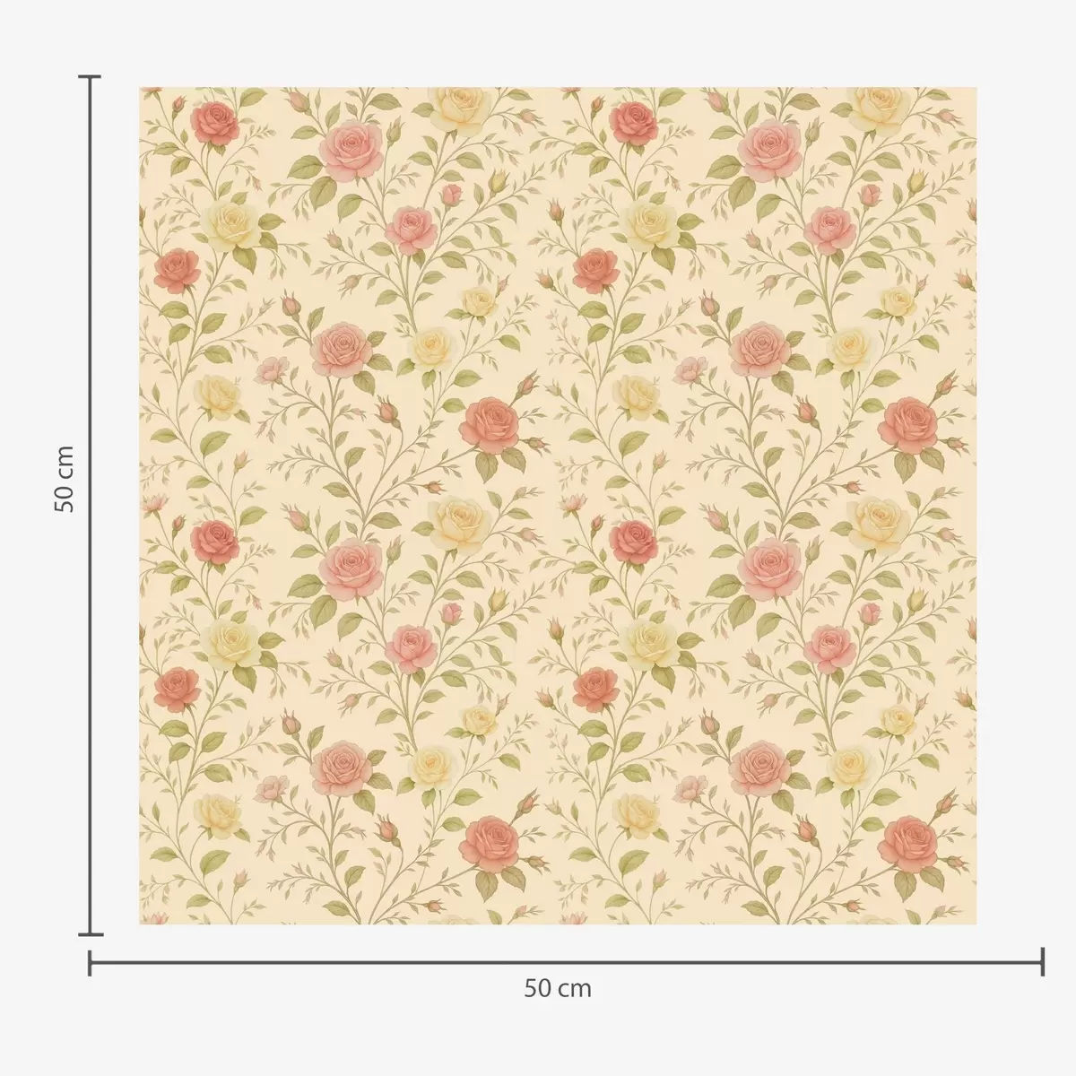 Papel de parede Rosas vintage em tons de pêssego e amarelo sobre fundo creme Nr. a00577