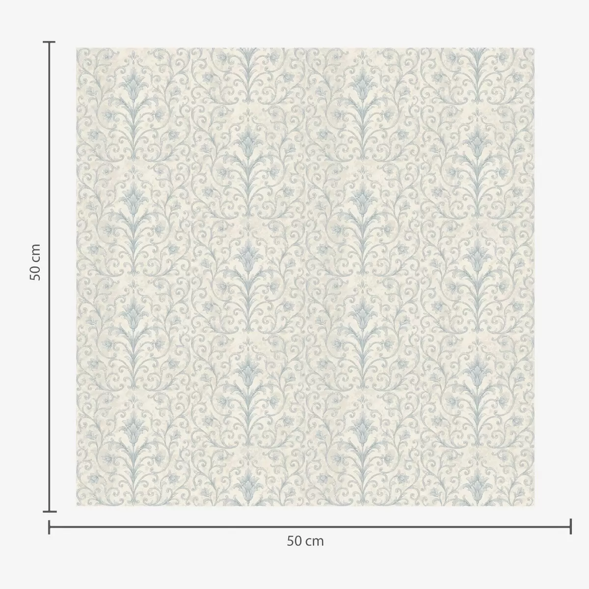 Papel de parede Damasco azul com arabescos sobre fundo creme Nr. a00578