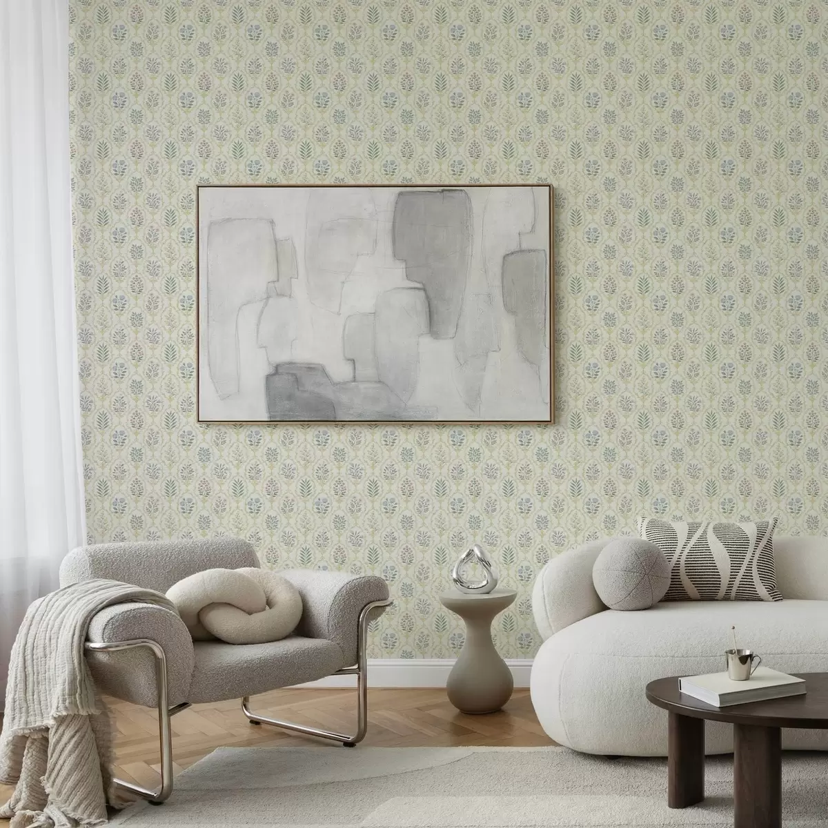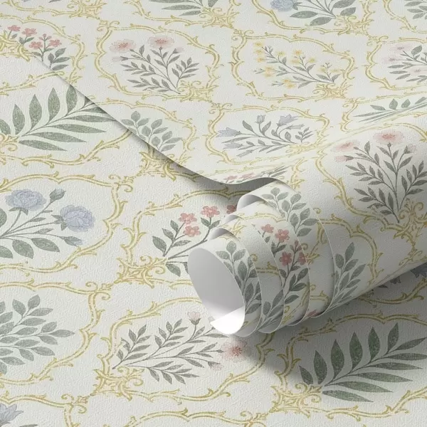 Papel de parede Medalhões botânicos em treliça, tons pastel Nr. a00579