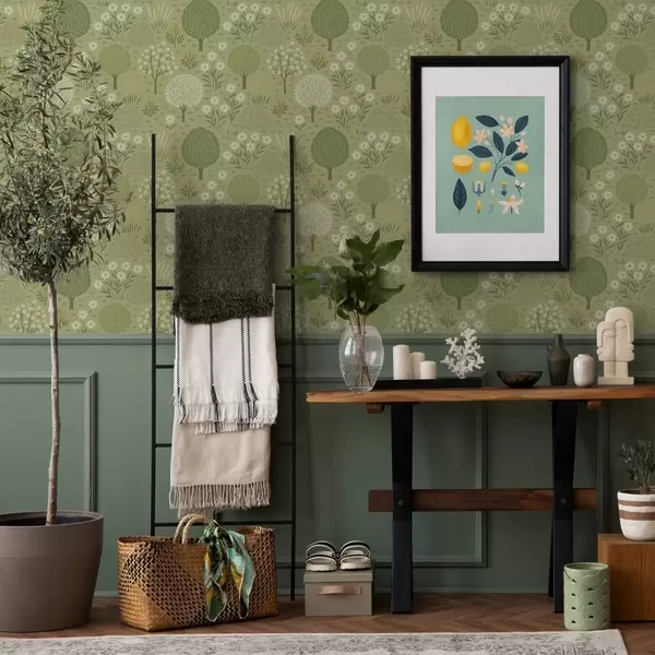 Papel de parede Jardim verde das crianças: árvores, flores e trigo Nr. a00586
