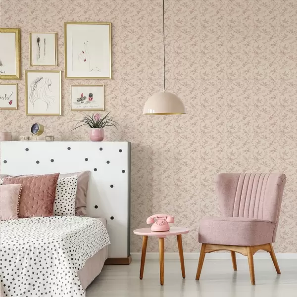 Papel de parede Pássaros e rosas, padrão vintage em rosa pálido Nr. a00587