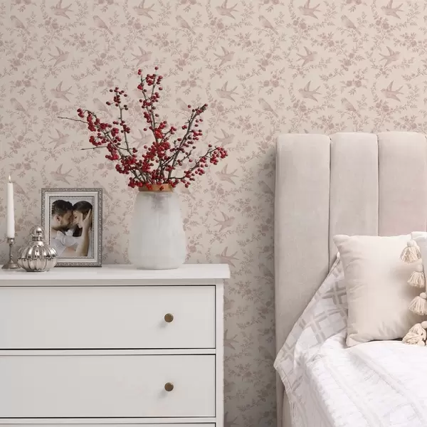 Papel de parede Pássaros e rosas, padrão vintage em rosa pálido Nr. a00587