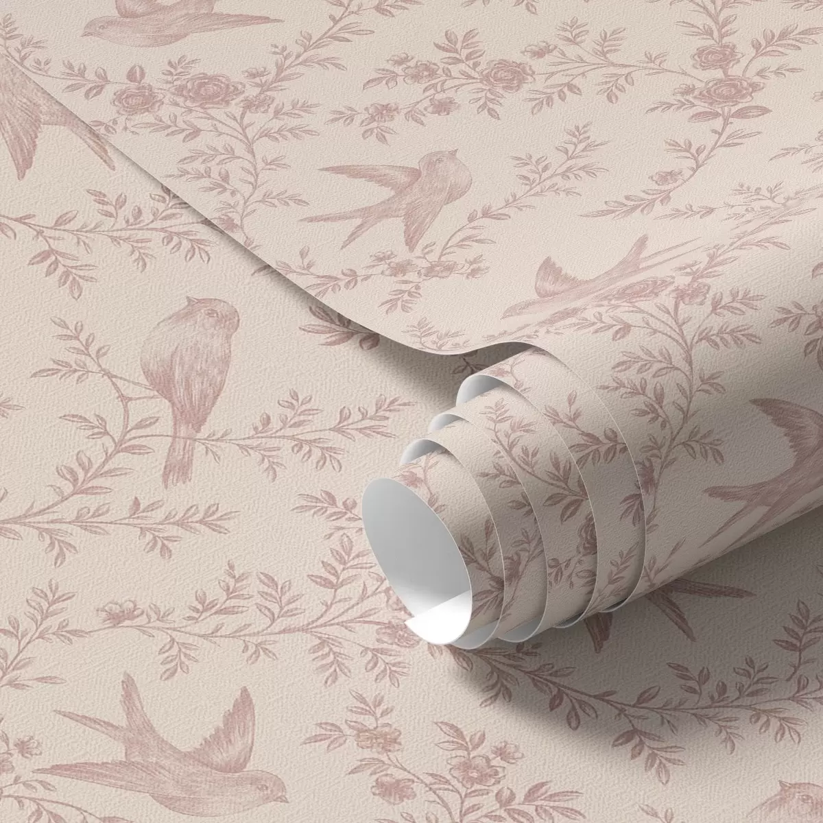 Papel de parede Pássaros e rosas, padrão vintage em rosa pálido Nr. a00587