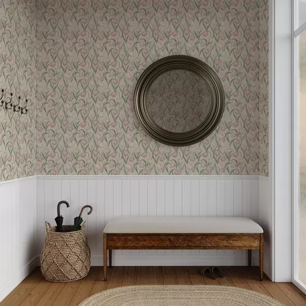 Papel de parede Tulipas rosa suave sobre um fundo bege delicado a00589