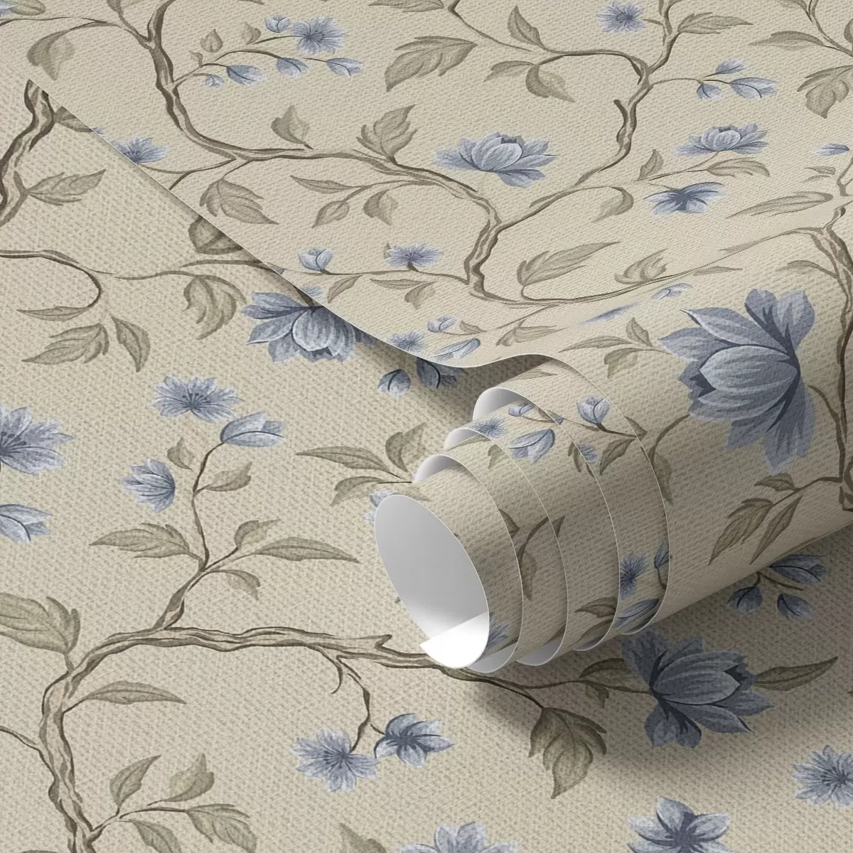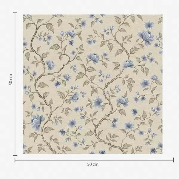 Papel de parede Galhos com flores azuis sobre fundo bege linho Nr. a00590