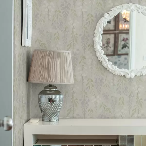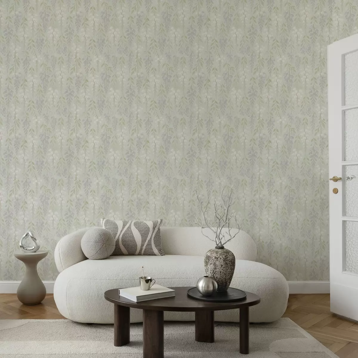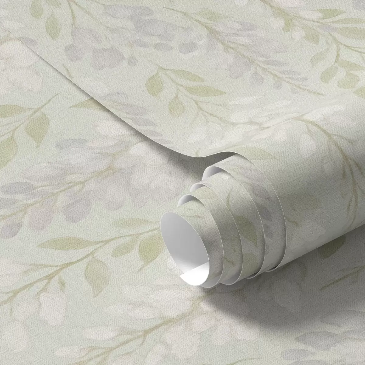 Papel de parede Glicínia lavanda pendente sobre fundo verde menta Nr. a00593